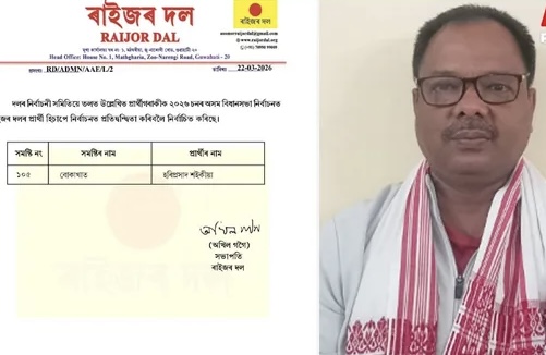 The candidate was finalised ahead of the March 23 deadline for filing nominations. Under the seat-sharing arrangement, Raijor Dal has been allotted 13 constituencies to contest this election. The agreement was reached after initial alliance talks with the Congress had collapsed, with both parties later returning to negotiations and finalising the deal.